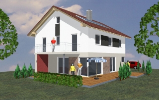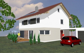Konzeption für ein Einfamilienhaus mit Garage in Massivbauweise.